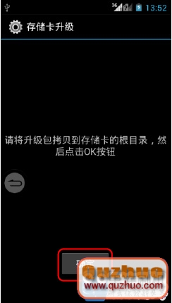3、點擊存儲卡升級,如升級包已經確認復制到了SD卡上,點擊確認。