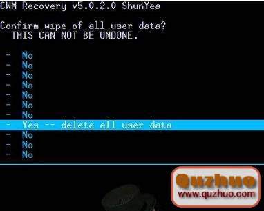會詢問你是否確認要進行 “wipe” 操作,將光標移動到 “Yes — delete all user data”,再按一次小房子鍵進行確認,手機將會被格式化。