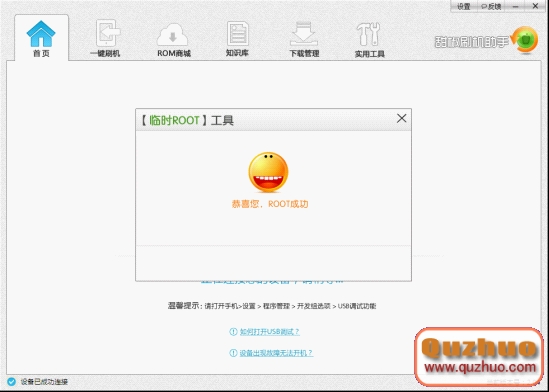 四、下來就需要對手機獲取ROOT權限。打開軟件實用工具,找到ROOT工具,直接點擊即可。我一般選擇臨時ROOT,一分鐘左右,會提示ROOT成功。