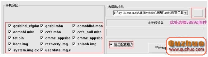 3.打開刷機工具DFU_tools.exe,選擇v889d固件包,勾選安全配置,如下
