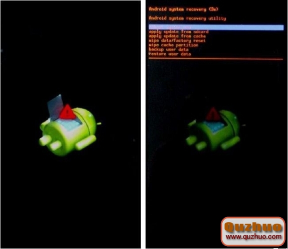 1、關機,同時按手機頂部的電源鍵 和 側面的上調鍵,手機進入recovery模式,