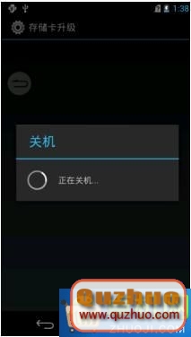 5、在“存儲卡升級”界面(圖2-6)點擊“OK”,此時手機自動關機。如圖2-8所示: