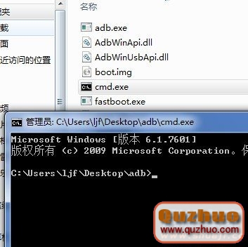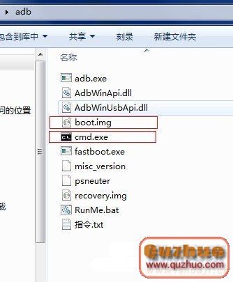 3:把上面下載好的adb工具包進行解壓,注意,這個時候要把你刷的boot.img文件放到解壓出來的adb文件夾裡,然後找到cmd.exe,然後直接雙擊運行;