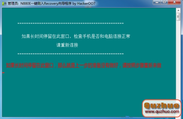 3、保持手機連接到電腦,運行recovery5.0.2.8_v889d.exe,按提示進行