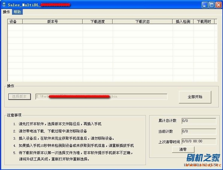 6、待下載的版本以第一次插入手機獲取的信息為准。若本軟件提示手機版本不正確,請關閉軟件並重新打開軟件以選擇最適配的版本文件。