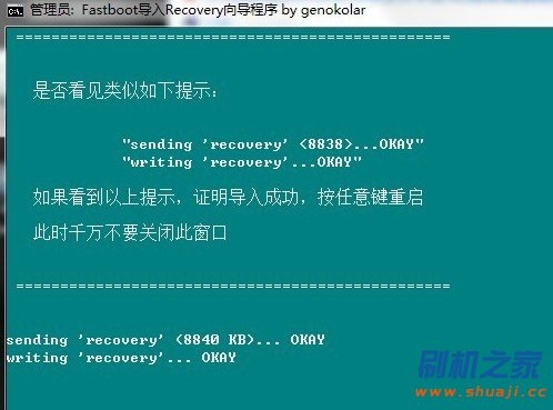 9、在出現下面的提示時請一定要注意,這時表示已經刷入recovery成功: