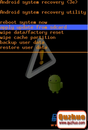 6:然後按音量上下鍵移動,移動至“ apply update from sdcard “,如果你的recovery裡沒有這一項,那就選擇“ apply update from external storage“,按開機鍵進行確認
