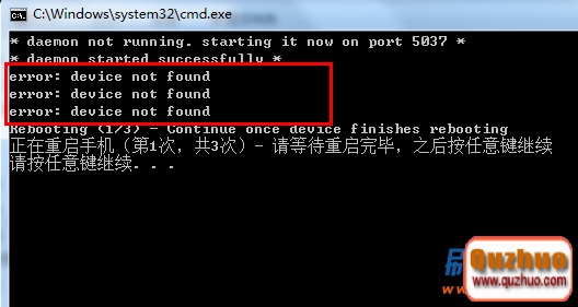 5:如果出現" device not found “的話,說明數據線沒有連接好電腦,或著電腦上沒有安裝驅動造成的,請仔細檢查一下
