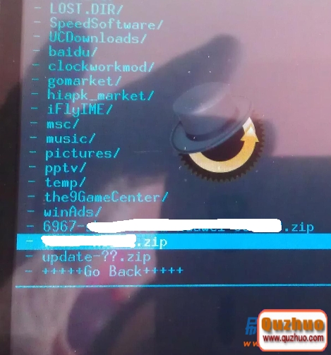4:雙清之後按音量鍵選擇install zip from sdcard,然後再選擇choose zip from sdcard,然後找到剛才放到手機sd卡裡zip格式的rom刷機包 XXXX.zip,然後按音量鍵選中,然後按HOME鍵確認,接著選中 Yes-install XXXXX.zip並確認開始刷機...