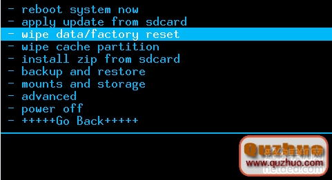 1、wipe data/factory reset 重置數據