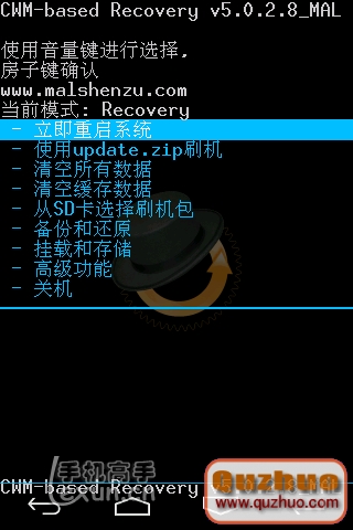 1、使用Recovery刷入樂蛙ROM(在手機上操作)