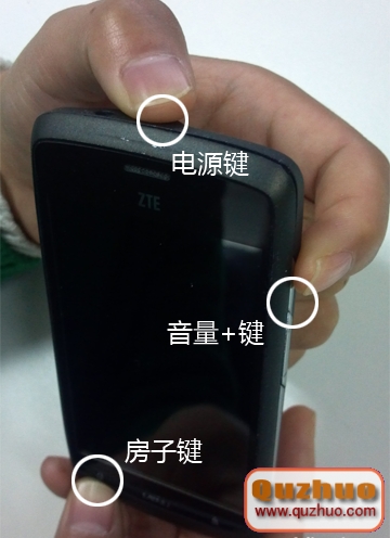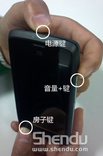 下載 Gen1-to-Gen2.zip(點擊下載);將解壓縮得到的文件拷貝到SD卡根目錄,關機並拔出電池,等待三秒再裝入電池,依次長按“音量+鍵,電源鍵”,保持5秒(如圖),手機會自動升級至Gen2。升級完請刪除SD卡上的Gen1-to-Gen2.zip