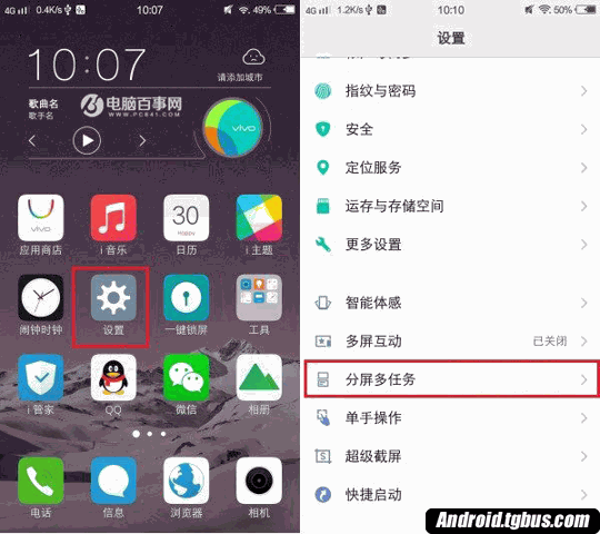 第一、打開vivo x7界面,進入「設置」,然後再進入「分屏多任務」設置。