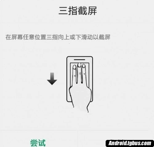 第二種方法是一加3手機自家設定的截屏方法,用戶想開啟該功能的話,只要到手機設置軟件裡開啟手勢功能,裡面找到三指截屏開關才能使用,開啟之後,在屏幕任意位置三指向上或下滑動即可截屏