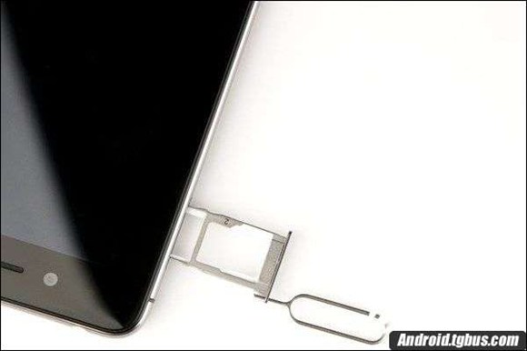 二、使用卡針,將nubia Z11 mini機身側面的SIM卡槽取出來,如圖。