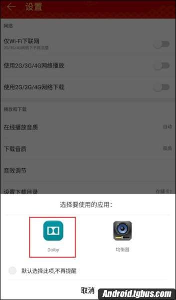 二、點擊【音效調節】,即彈出杜比和均衡器選項,此時我們選擇杜比音效並進入(自帶的均衡器可以忽略被秒十條街),如圖所示: