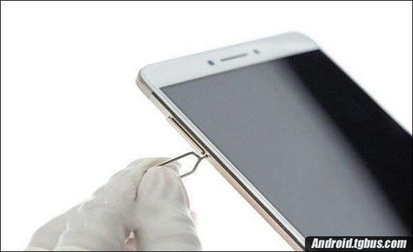 第一步:首先使用小米Max自帶的SIM卡針,將機身左側的 SIM卡托 取出,如下圖所示。