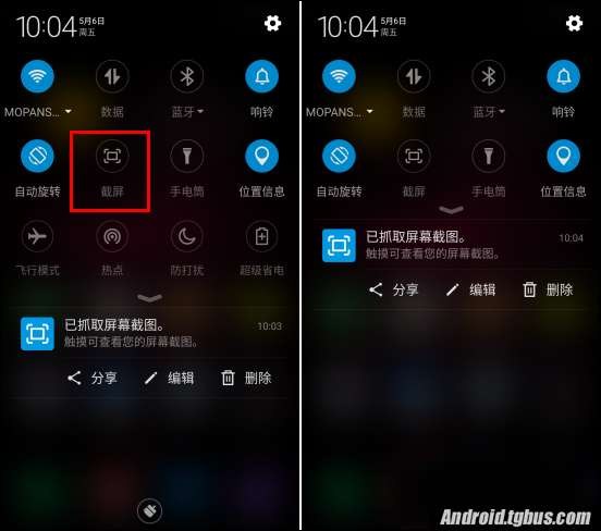 360手機N4運行的是360 OS系統,該系統在屏幕下拉調出快捷頁面之後即可看到【截屏】快捷開關按鈕,點擊一下即可快速截取所在屏幕的畫面,非常方便,如圖所示。