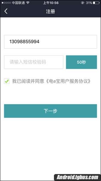 三、隨後手機會收到一條驗證碼,輸入注冊頁面當中,點擊【下一步】如圖所示。