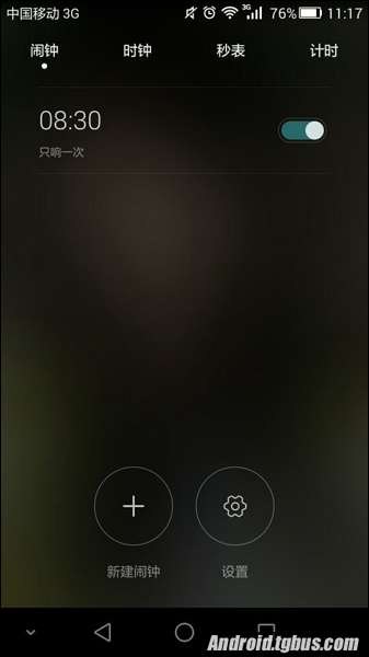 1、進入到榮耀5C主系統界面,在其界面找到並點擊進入到【時鐘】,進來之後在其下方有一個【新建鬧鐘】按鈕,如下圖所示: