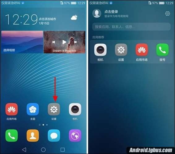 一、首先在華為G9青春版系統桌面找到並點擊進入到【設置】界面,如圖所示。