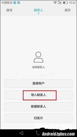 一、首先將SIM卡安裝到P9手機中,然後從華為P9桌面打開聯系人,當我們進入空聯系人的時候,選擇【導入聯系人】,如圖所示: