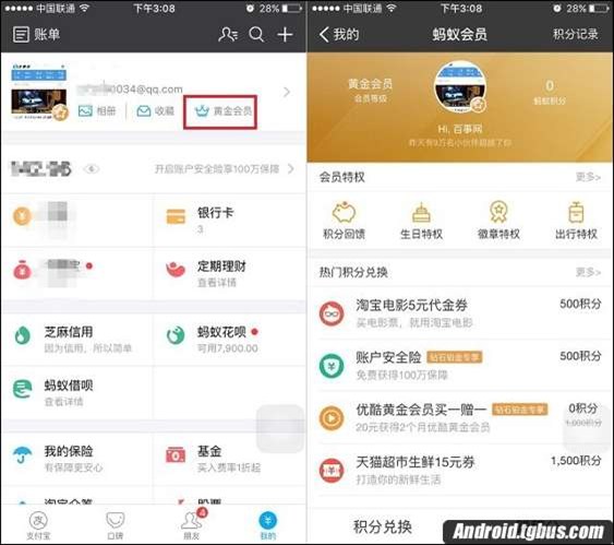 當然,可能有的人這裡顯示的是大眾會員或者鑽石會員等等,由於支付寶會員等級有多個,下面我們再來具體看看。