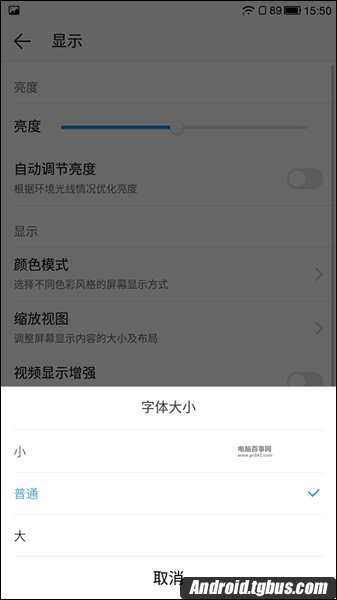 4、在彈出的對話框中,可根據自己閱讀的習慣對系統字體大小進行設置,供選擇的字體大小有:小、普通和大三種選擇,如下圖所示。