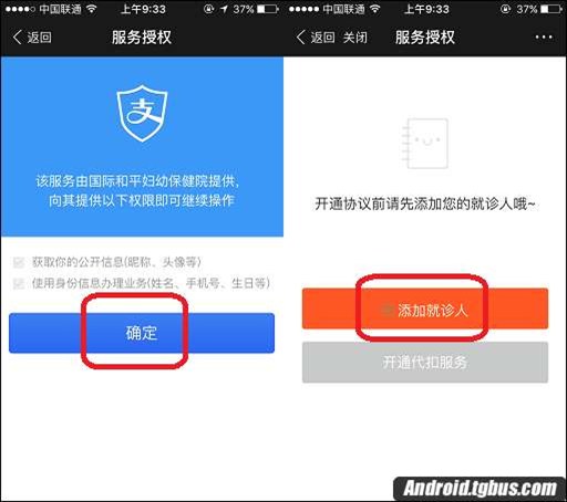 3.接著服務授權登錄點擊確定,再添加就診人,如圖:
