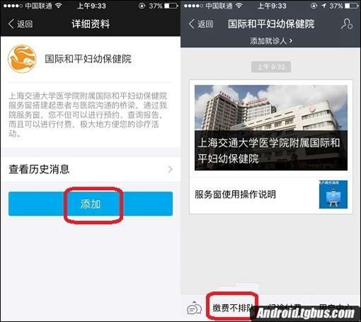 2.然後添加國際和平婦幼保健院,點擊“繳費不排隊”,如圖:
