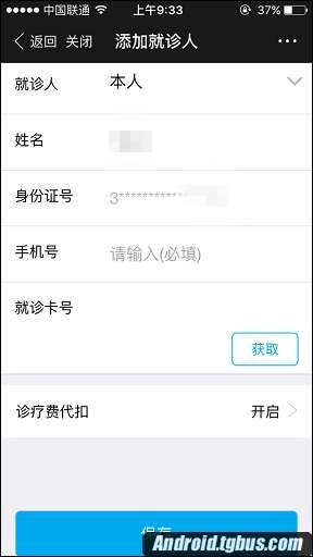 4.在添加就診人裡填寫相關信息並保存,如圖:
