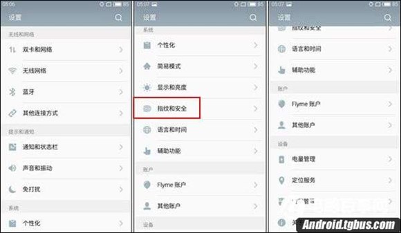 二、然後在設置頁面中,再點擊進入【指紋和安全】,再進入【指紋管理】,然後按提示設置好4-17位鎖屏密碼之後,接下來就可以為這款魅藍note35添加指紋了。這點適合此前的魅藍metal一樣的操作步驟,只需按照提示來錄入即可,整體錄入大概需要20次作用即可錄成一個指紋,如下圖所示: