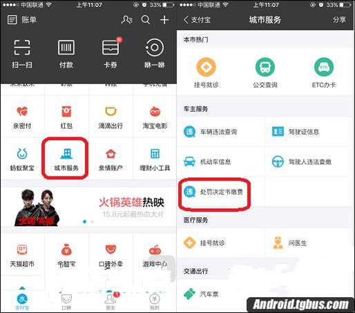 1、打開支付寶,點擊“城市服務”-“處罰決定書繳費”,如圖: