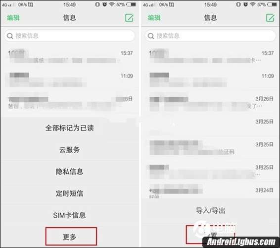 一、首先先打開vivo X6的【信息】頁,然後點擊菜單虛擬按鈕找到並點擊【更多】,打開後我們再點擊【設置】,如下圖所示。