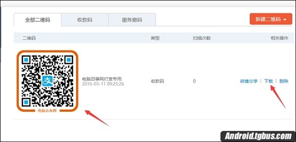 第二步:登陸成功之後,點擊右上角的“新建二維碼”->“收款碼”,如圖。