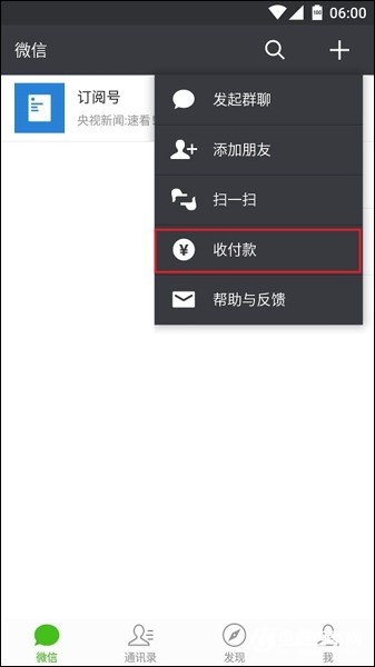 1、首先在手機中打開微信,點擊右上角“+號”,選擇“收付款”,如圖。