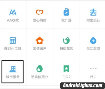 2、找到“城市服務”按鈕,進入城市服務界面;