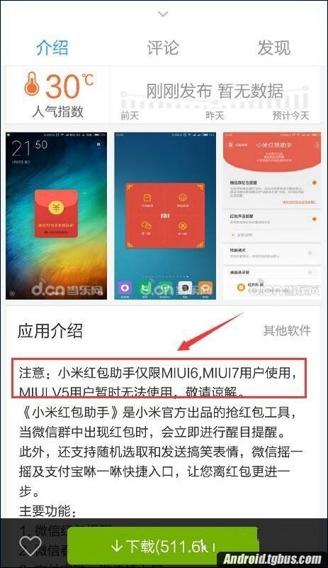 1、由於小米紅包助手是小米針對miui6以上開發的搶紅包神器,該軟件目前僅限MIUI6,MIUI7用戶使用,MIUI V5用戶暫時無法使用喲,如果用戶遇到了安裝失敗,最大可能性就是你的手機系統不支持喲。