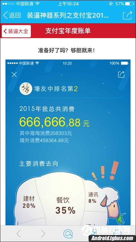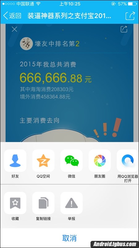 通過上面簡單的三步,大家就可以改變自己的支付寶賬單來裝逼了。如果您還不知道2015支付寶年度賬單如何裝逼的話,可以通過上面的教程來參考下,希望能對大家有所幫助。