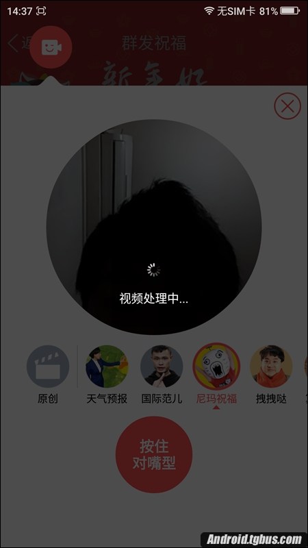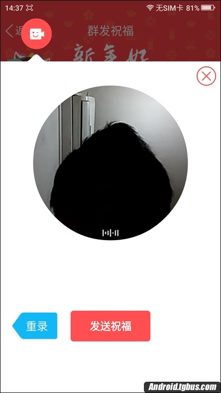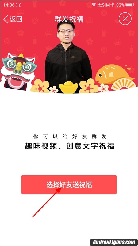 四、接下來當然就是開始選擇好友了,選擇完完之後,便進入到了發祝福界面,我們不能發現有兩種群發祝福方式,一種是錄視頻祝福和寫文字祝福,如下圖所示: