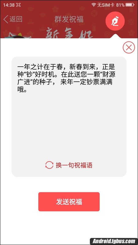 七、再比如小編選擇文字祝福,我們會系統已經自動提供了一種祝福文字,當然了我們也可以自己修改祝福語哦,如下圖所示: