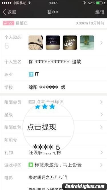 1、在您的個人資料頁面找到“陌陌紅包”欄;