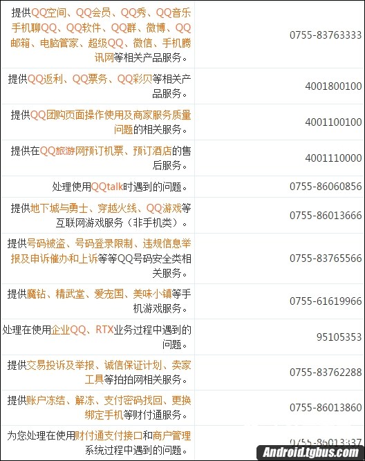 當然也可以查閱騰訊的詳細客服電話,具體電話列表請參閱: