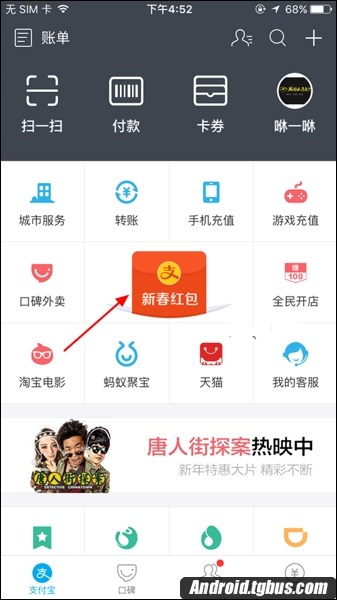 一、支付寶創建中文紅包口令不再是夢~醒醒吧!更新到支付寶錢包9.5.1再說,然後在支付寶錢包主頁找到【新春紅包】。