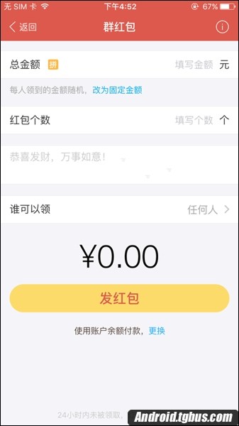 三、群紅包嘛,多少個多少錢請隨意吧,我不介意別人發個超大紅包,點擊【發紅包】。