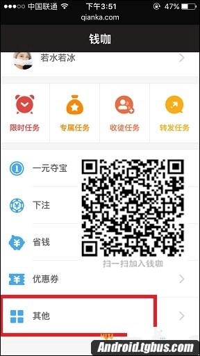 1.打開錢咖首頁,下拉點擊“其他”,如圖: