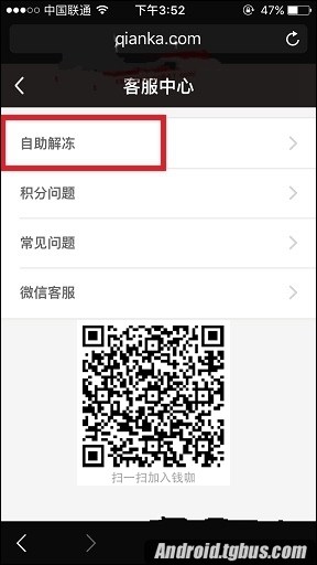 3.點擊“自助解凍”,如圖: