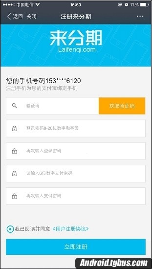2、注冊一個來分期賬號這裡就省略步驟了。