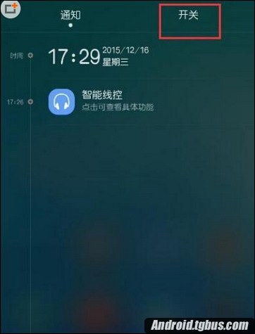1、首先,在解鎖情況下查看手機,我們下滑手機上部,直到出現“通知”和“開關”選項;