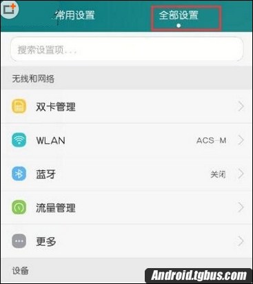 3、設置中有“常用設置”和“全部設置”兩個選項,我們選擇“全部設置”選項;
